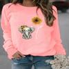Women Autumn Winter Sunflower Elephant Printed Long Sleeves Round Neck Loose Fleece