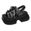 Mode Neue Sommer Freizeitschuhe Frau 8CM Hohe Plateau-Trainer Atmungsaktive Absätze Keilabsatz Sneakers Damen Leder Klobige Sandalen