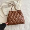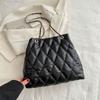 PU-Leder Plaid Gesteppte Damen Schultertasche Polsterung Unten Leichte Casual Kette Umhängetasche Große Eimer Handtasche