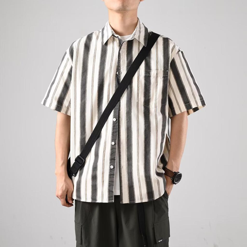 Sommer High-End Herren Gestreiftes Slim Fit Kurzarmhemd Trend Dünnes Lässiges Kurzarmhemd Herrenhemd