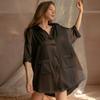Sommerhemd Nachthemd Damen Boyfriend Style Einfarbig Sexy Dünnschliff Kurzarm Home Wear Pyjamas