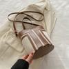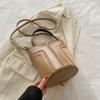 Retro Bucket Bag Personalisierter Trend Einfache Umhängetasche aus PU-Leder Kontrastfarbe Umhängetasche