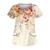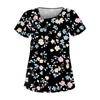Damen-Arbeitsoberteil mit lässigem Print, kurzen Ärmeln, schrägem Kragen und Doppeltaschen