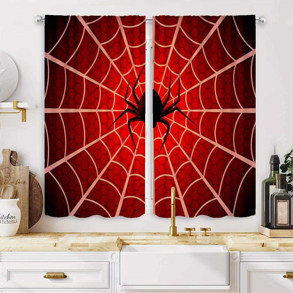 2 Stück Schwarze Spinne Rot Abteilung HD Digitaldruck Vorhänge Heimdeko Wohnzimmer Schlafzimmer Stangentasche Vorhang Effekt Stil Bett