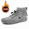 Neu Herrenstiefel Winterschuhe für Herren Pelz Warm Schwarz Leder High Top Freizeitsneaker Luxusmarkenschuhe Motorrad-Stiefeletten