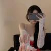 Mesh Fishnet Bowknot Long Gloves for Women Lace Ruffle Fingerless Gloves Mittens Lolita Kawaii White Gloves UV Protection