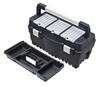 Fassungsvermögen und Organisation - dank der Organizer im Deckel der Box lassen sich Kleinteile wie Schrauben oder Dübel leicht aufbewahren, und die tiefe Ablage bietet zusätzlichen Platz für größere Werkzeuge.