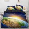 Galaxy Planet König Königin Bettbezug Universum Himmel Bettwäsche Set 3D Blaue Erde Weltraum Astronomie Polyester Steppdeckenbezug