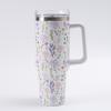 Eisbecher mit großem Fassungsvermögen, 40 oz, Wasserbecher mit bedrucktem Griff, 1200 ml Sportwasserflasche, dicker Thermosbecher mit Kunststoffbeschichtung