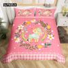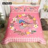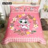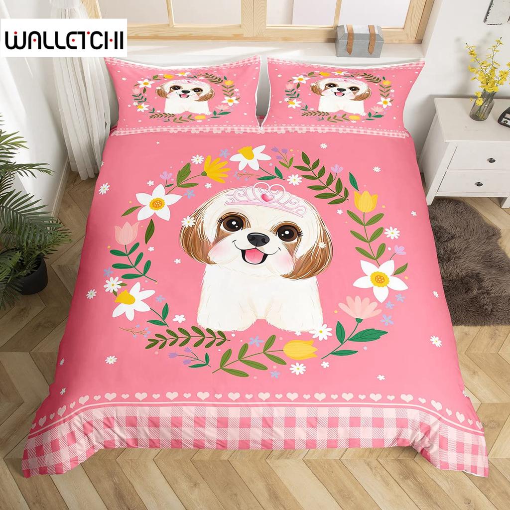 Cartoon Tier Hund Bettbezug King Size Rosa Büffel Bettdeckenbezug Floral Welpe Prinzessin Bettwäscheset Hundeliebhaber Schlafzimmerdeko