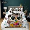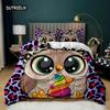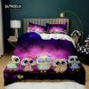 Eulen-Bettbezug-Set, süße Eule und Sterne Dekor, Bettbezug, Weltraum-Bettbezug-Set, Kinder, süßer Tier-Polyester-Quilt-Bezug