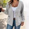 Herbst Winter Einfarbig Knopf V-Ausschnitt Locker Langarm Strickjacke für Damen