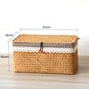 Seetanggewebte Kiste, Graskorb mit Deckel, Haushaltsaufbewahrungskorb, Snackaufbewahrung, Rattanstoff, rechteckig, Schlafzimmer-Sortierboxen