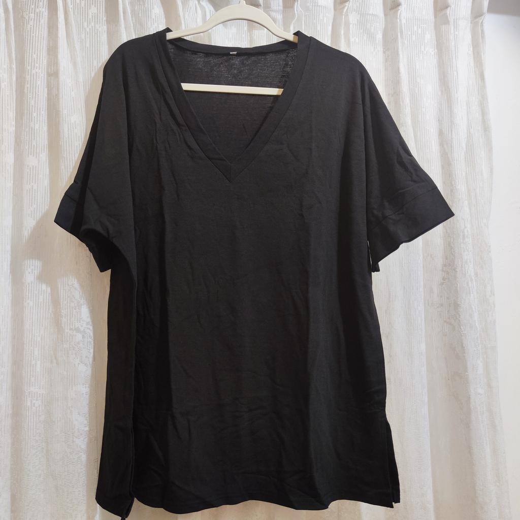 Plus Size Damen Sommer Neues großes V-Ausschnitt Einfarbig Kurzarm Lose Top