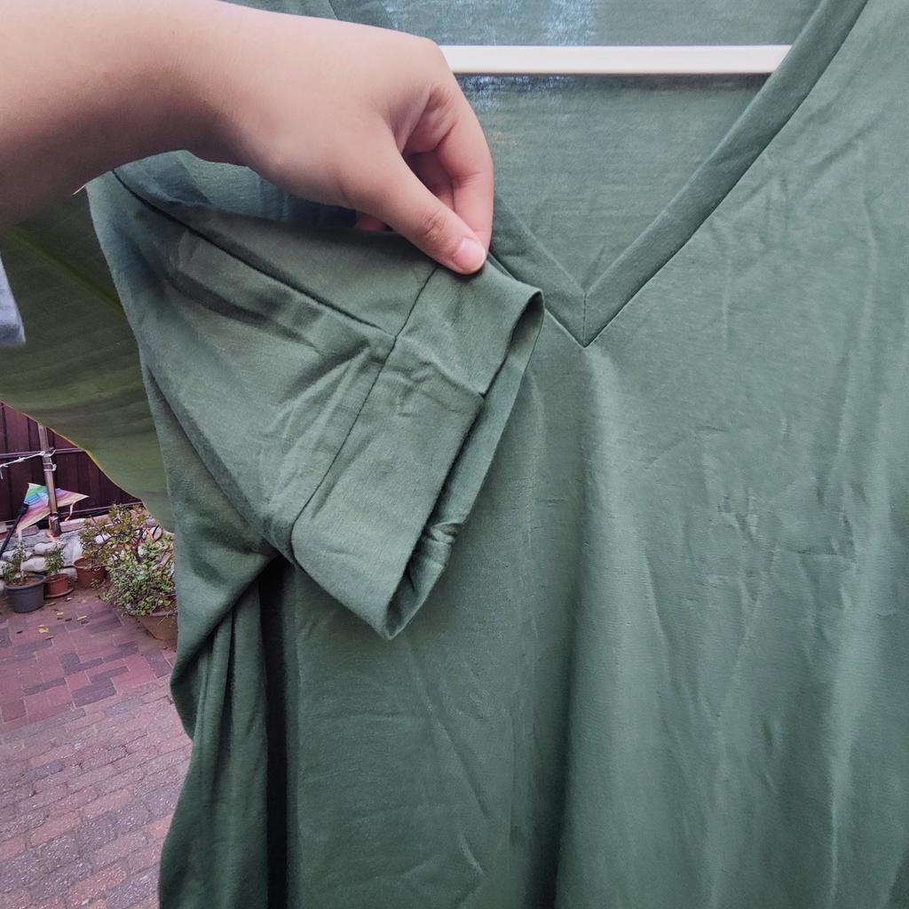 Sommer-Top in großen Größen – die perfekte Kombination aus Komfort und Stil! Dieses Oberteil ist einfach perfekt für den Sommer – mit einem weiten V-Ausschnitt, der den Hals zart und schmeichelhaft betont. Der lockere Schnitt sorgt für eine angenehme Luftzirkulation, sodass es bequem ist und für jeden heißen Tag geeignet ist.. Der Stoff kombiniert Baumwolle mit Elasthan, was sowohl luftdurchlässige Atmungsaktivität als auch ein weiches Hautgefühl verleiht. Die vielfältigen Farben – von klassischem Weiß bis hin zu Grün und Khaki – ermöglichen es, den Ton zu wählen, der genau zu Ihrem Stil passt.. Die dreidimensionalen Elemente verleihen eine besondere Note, und die kurzen Ärmel sind sehr gut für warme Tage geeignet, wenn Komfort und Leichtigkeit der Schlüssel sind.. Passt nicht nur für Ausflüge und freie Tage, sondern auch für einen lässigen Alltagslook mit modischen Akzenten. Sehr empfehlenswert!