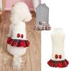 Haustier Pelzkleid Weiß Grau Strickpullover Gespleißt Schleife Karierter Rock Wollmantel Pullover Hund Weihnachtskleidung Welpenkleidung