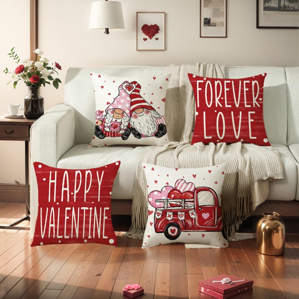 Kissenbezug Valentinstag Leinendruck Sofa Dekorativer Kissenbezug
