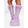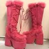 Winter Damen Schneestiefel Plateau Keilabsatz High Heel Kunstpelz Damenschuhe Damen Plüsch Warm Rutschfeste Stiefel Mitte Wade Gothic Schuhe
