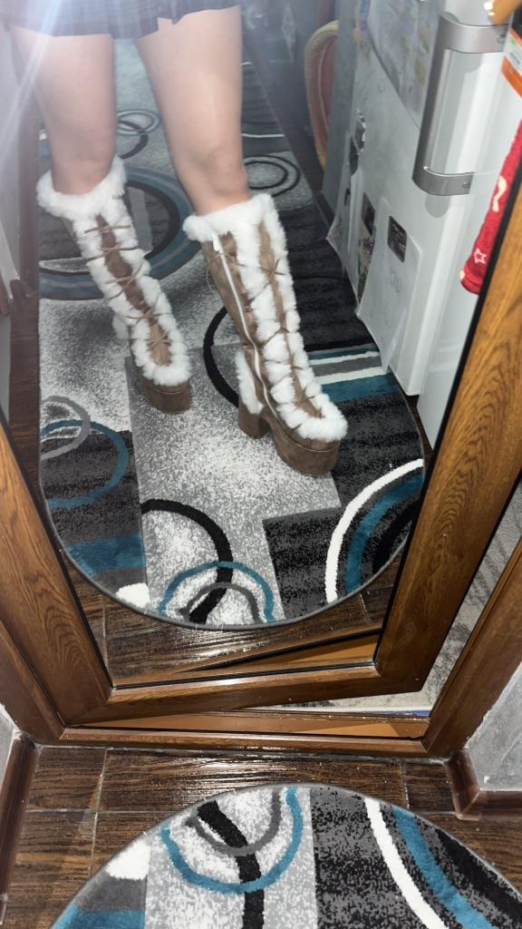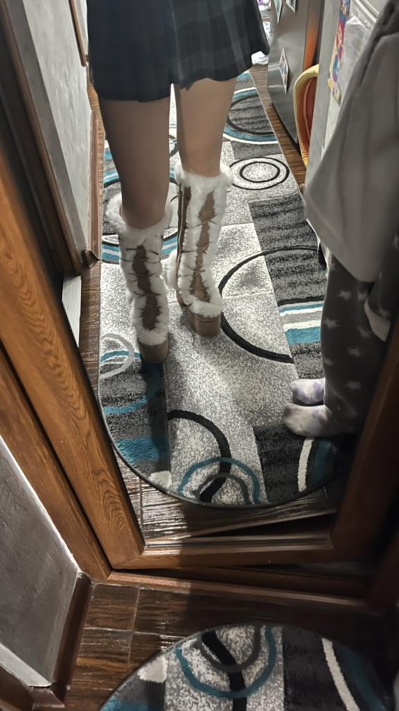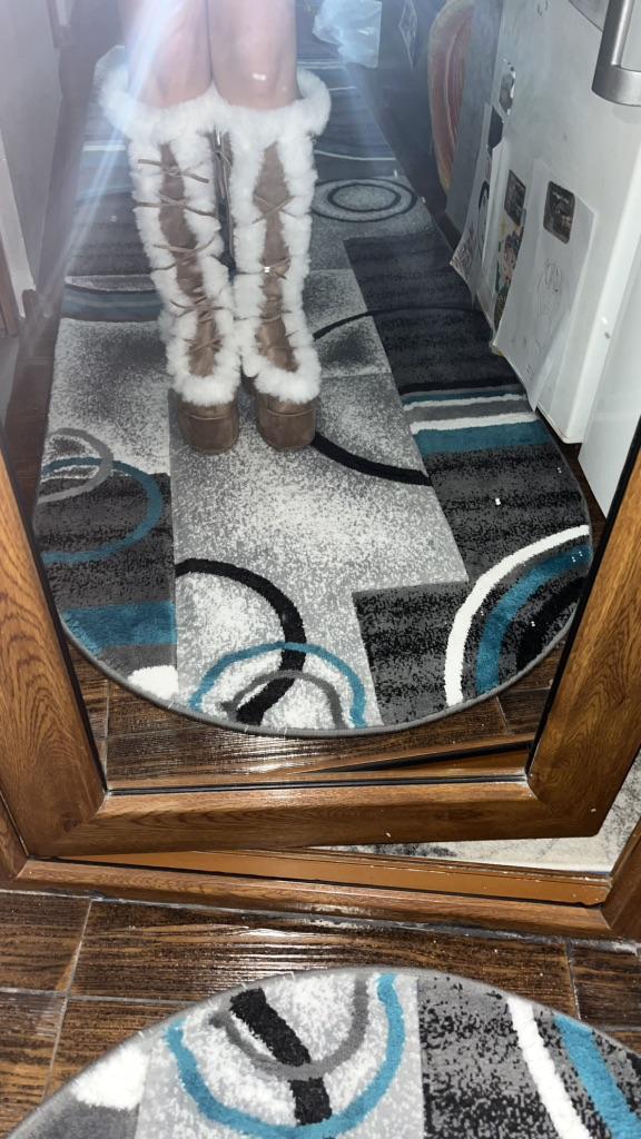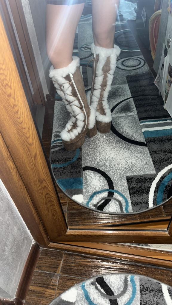 Sie sind ziemlich schnell angekommen. Die Stiefel sind schön, stimmen aber nicht ganz mit dem Bild überein. Die Tasche hat eine andere Farbe, vorne ist zu viel Fell und es sieht nicht so aus wie auf dem Bild. Etwas enttäuschend…