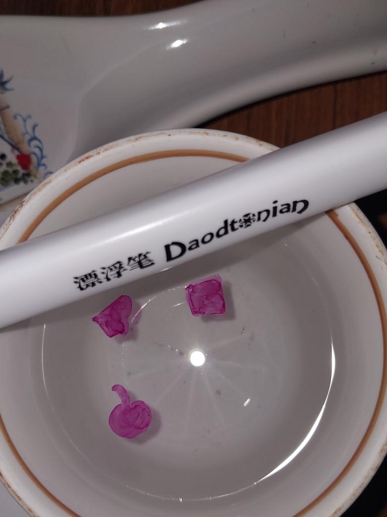 Marker zum Zeichnen auf Wasser. Zuerst zeichnet man auf eine Keramikoberfläche, dann lässt man sie ins Wasser fallen und die Zeichnung bleibt auf dem Wasser zurück.. Ich empfehle zu kaufen.
