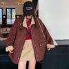 Ankora Roter Pelz Einteiler Lammwolle Mantel für Damen Winter Neu Klein Lässig Freizeit Plus Samt Verdickt Baumwollmantel