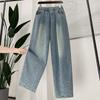 DIMANAF 2025 Frühling Jeans Lange Hosen Damen Denim Elastisch Basic Hosen Locker Lässig Blau Weiter Bein Hosen Lässige Hosen Große Größen Hosen