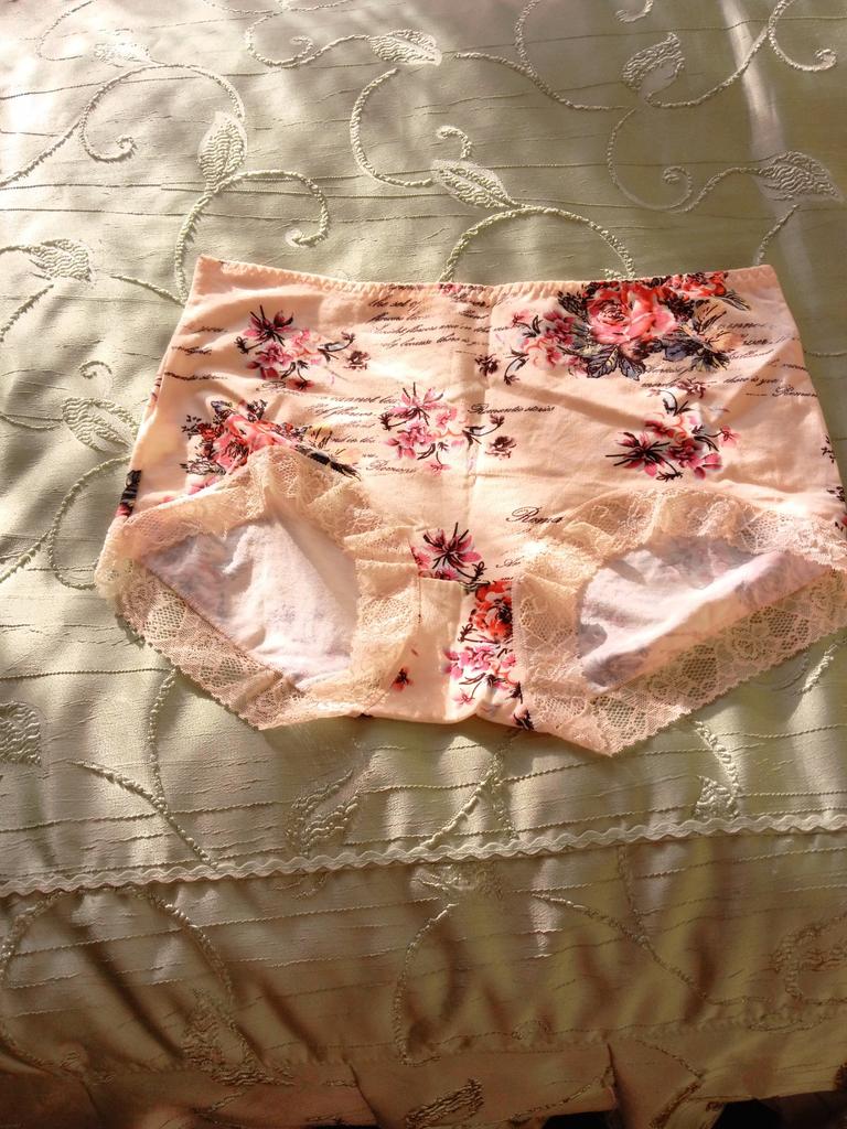 Baumwollunterwäsche mit mittlerer Taille, flacher Winkel, elastisch, atmungsaktiv, bedruckt, Spitzenrand, Dreieckshöschen