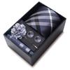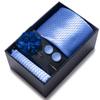 The set includes tie, square scarf, cufflinks, black gift box, and corsage.