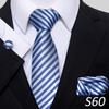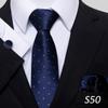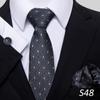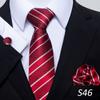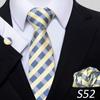Das Set beinhaltet Krawatte, quadratisches Tuch und Manschettenknöpfe.