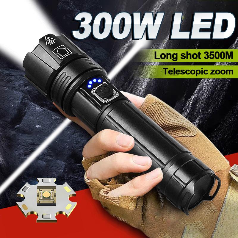 C-300W LED-Taschenlampe mit 26650 Akku und Ladekabel