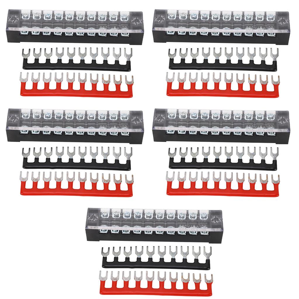 5 Set 10 Position Terminal Block Connector Strip Kit Dual Row Screw Pre Insulated Jumper 15A 600V