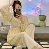 Damen-Pyjama-Set, lässiger Pyjama für Damen, V-Ausschnitt, langärmeliger Pyjama für Damen, Herbst und Winter, goldener Samt, Heimkleidung