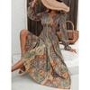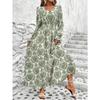 Herbst Damen Bedruckte Kleider mit V-Ausschnitt und langen Ärmeln
