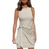 Damenmode, einfarbig, ärmellos, Rundhalsausschnitt, Schleife, unregelmäßiger Gürtel, Hüftwickelkleid