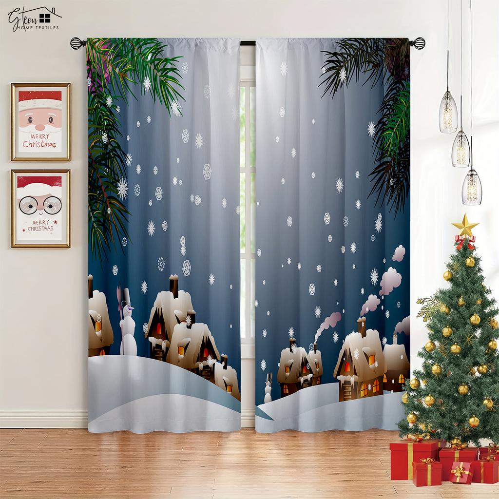 Weihnachten 3D-gedruckte Vorhänge Weihnachtsbaum Geschenk Wohnzimmer Schlafzimmer Kinderzimmer Neujahr Feiertagsdekoration Vorhänge 2 Stück