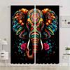 2 Stück Böhmische Vorhänge Fensterdraperien mit Mandala-Blume Elefant Tropische Pflanze Druckmuster Ösenoberteil Vorhang für Schlafzimmer
