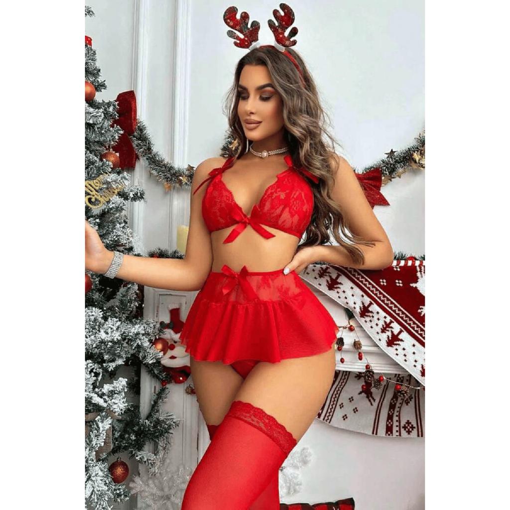 Sexy Red High Waist Skirt New Year's Eve Nightgown (socks Not Included.)