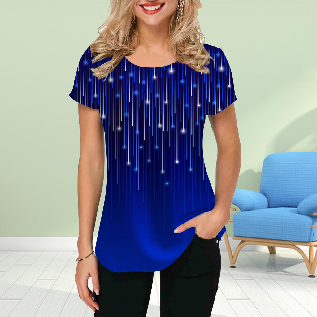 Mode Damen Meteor Print T-Shirt Lustiges Casual O-Ausschnitt Kurzarm T-Shirt Sommer Damen T-Shirt