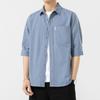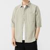 Reines Baumwoll-Kurzarmhemd für Herren, bügelfrei, Dreiviertelarm, gewaschene Hemdjacke, lässiges, vielseitiges Oberteil