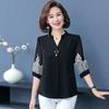 Koreanische Shirts Tops Frauen Blusen Büro Chiffon Shirts Elegante V-kragen 3/4 ärmeln Frauen Tops blusas