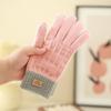 Herbst und Winter Warm Rutschfest Plus Samt Verdickt Zweifarbig Jacquard Handschuhe Gestrickt Fünffinger Radfahren Wolle Colorblock Touchscreen Handschuhe