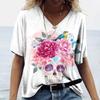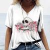 Damen V-Ausschnitt Blumen Totenkopf Print Lässig Lose Street Trendy T-Shirts Damen