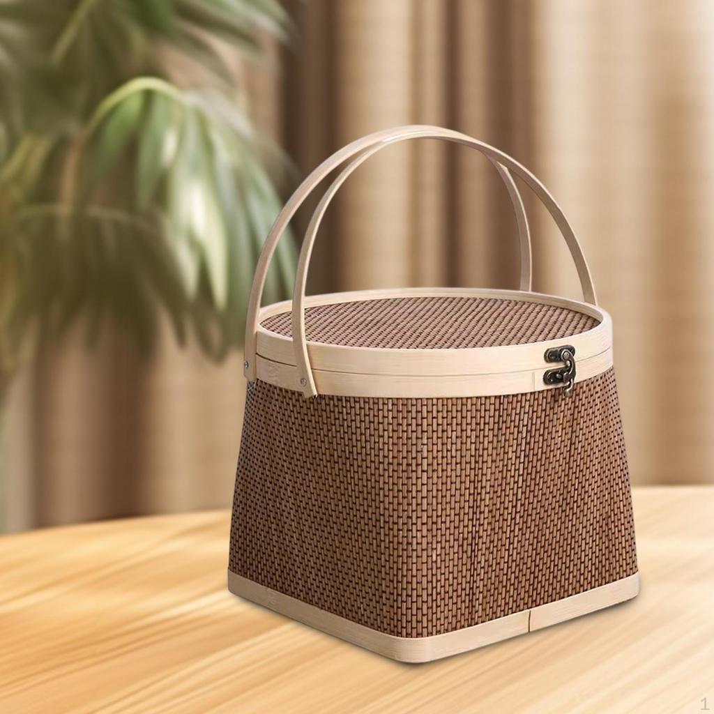 Bambuskorb mit Deckel Lebensmittelaufbewahrung Tragbarer handgemachter gewebter Geschenkkorb
