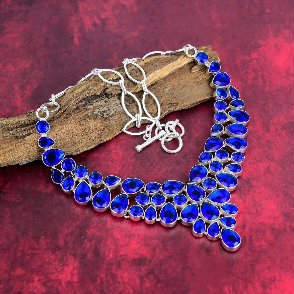 Blaue Saphir Halskette, handgefertigte Edelstein Halskette, 925 Sterling Silber Halskette Antiker Schmuck, Für Verlobungsgeschenk