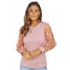 Damen Chiffon-Shirt mit kleinen Blumen aus Netzstoff für Frühling und Sommer, Rundhalsausschnitt, Schlankheitseffekt, Pullover, langärmeliges Oberteil
