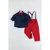 Deer Patterned New Year Concept Boy's Shirt Suit With Salopet