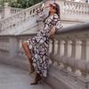 Herbst Damenkleid V-Ausschnitt Langarm Print Unregelmäßiges Kleid