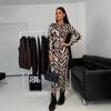 Damen Print Slim-Fit Hoch tailliertes MIDI-Kleid Langärmliges Kleid