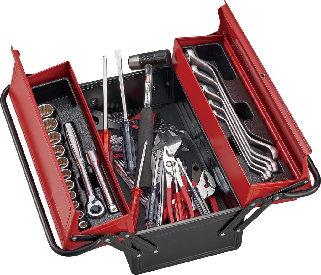 Set-Inhalt 3: [Durchdringender Schraubendreher: KMD-075, 100, 150 (-Vierkantschaft Kunststoffgriff)/KPD-001, 002, 003 (+Vierkantschaft Kunststoffgriff)], [Kombihammer -: BHC-10 (1 Pfund)], [Langer Sechskantschlüsselsatz in L-Form: AL900 (AL-1.5, 02, 2.5, 03, 04, 05, 06, 08, 10)], [Werkzeugkoffer: BX420]