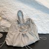 Unifarbene Kordelzug-Tragetasche Leichte Nylon-Umhängetasche Stil Atmungsaktive plissierte Schultertasche